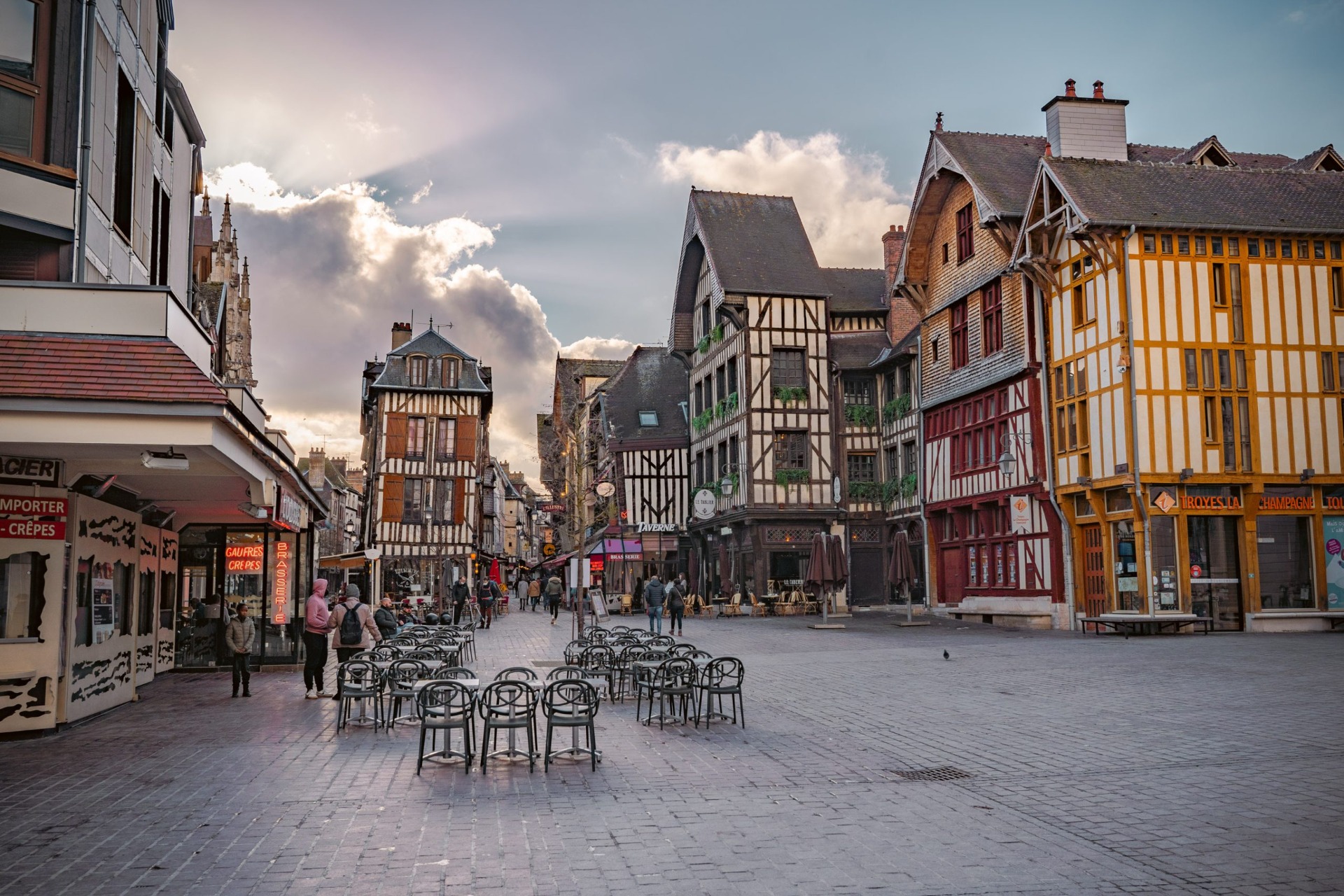 Troyes bestaat al sinds de Romeinse tijd, en in de binnenstad, waan je weer even terug in de tijd als je de oude gebouwtjes en kathedralen ziet. Zoveel kleine straatjes, gekleurde panden, scheve huizen, de mooie panden, pleintjes, terrassen etc.....prachtig om te zien en om doorheen te dwalen.